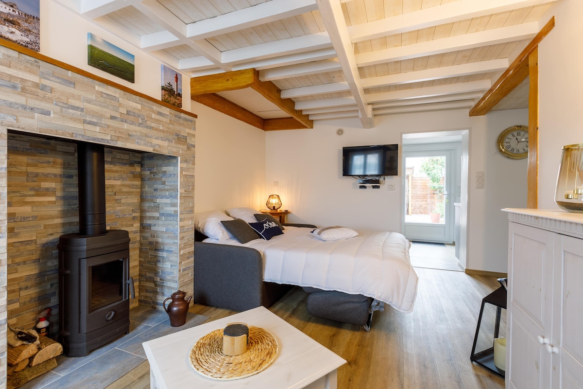 A small love nest in the heart of St-Valery-sur-Somme, the Somme’s bay welcomes couples for a moment of relaxation and peace thanks to its Spa area and a bedroom with a king-size bed. Warmly welcomed , bathrobes and cozy towels will accompany you in the spa area, equipped with a large jacuzzi with 2 massage areas, a Finnish sauna and two separate showers. And more a quality sound system and chromotherapy for the pleasure of the senses.