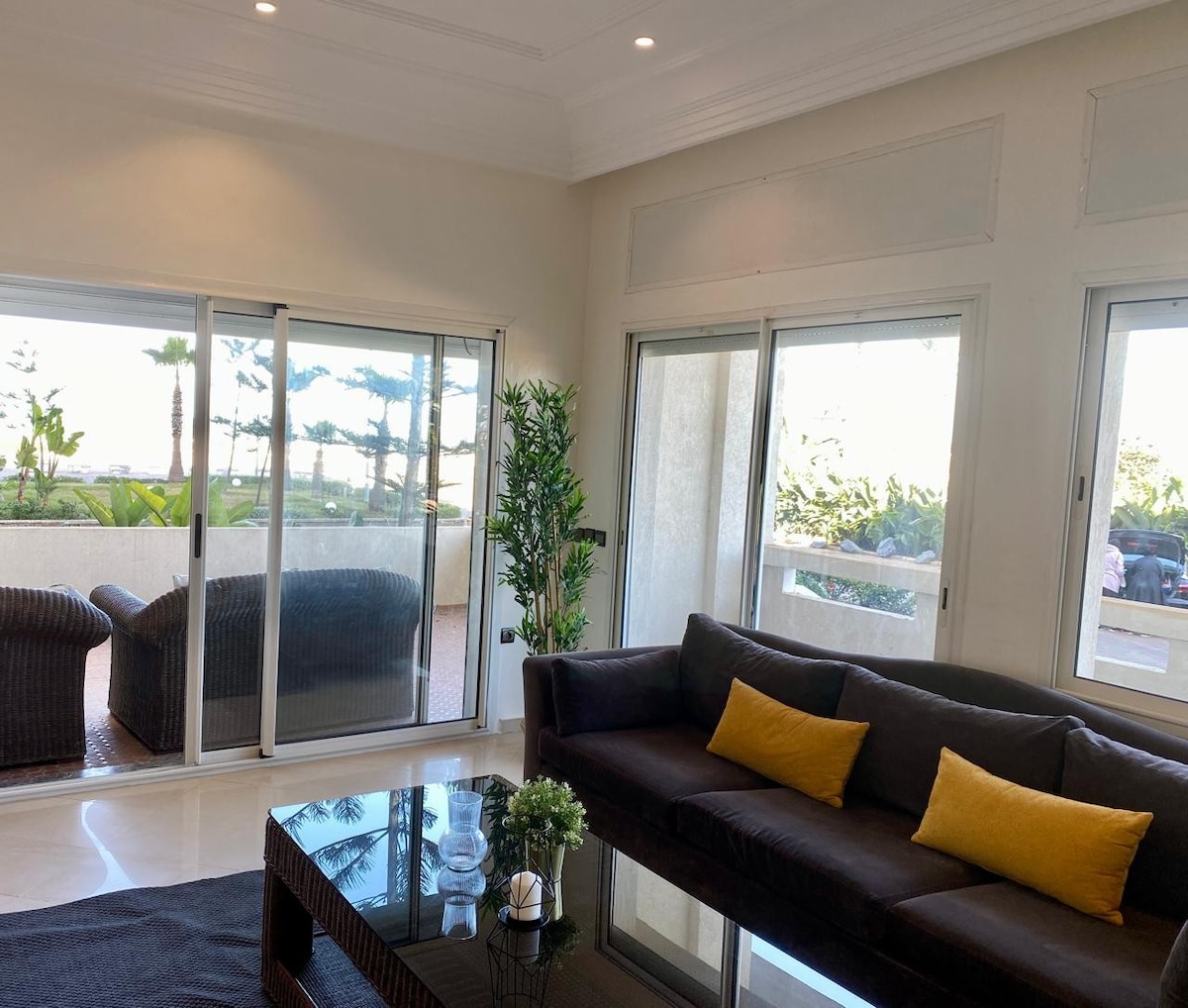 🏝️🏝️⭐️BEACH HOUSE 20 mètre de la plage avec Fibre optique 200 mega, parking privée 🏖️ Parfait pour télé travail, disponible en longue durée 5 min de la gare et de l’autoroute 20 min de Casablanca et Rabat Appartement Neuf en front de mer idéal pour voyageurs et familles souhaitant profiter pleinement de la plage. 5 min centre villes,des commerces, des restaurants, des transports en communs Taxe touristiques : 15 dh/personne/ par jour