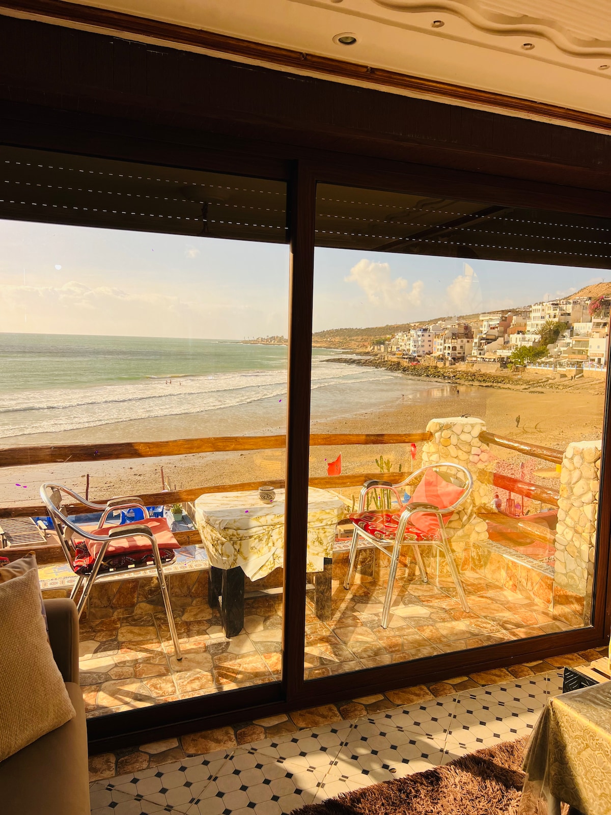 C'est le seul appartement dont le balcon de 17m2 est construit au dessus du chemin qui longe la plage, offrant une vue exceptionnelle sur les vagues, le village, les pêcheurs, les surfeurs. Très confortable, décoré et entretenu avec soin pour un séjour exceptionnel au dessus de l'océan, proche des nombreux cafés et restaurants longeant la plage et à 2 pas des écoles de surf, au coeur de ce village berbère convivial mêlant pêcheurs, commerçants, surfeurs du monde entier...et quelques touristes.