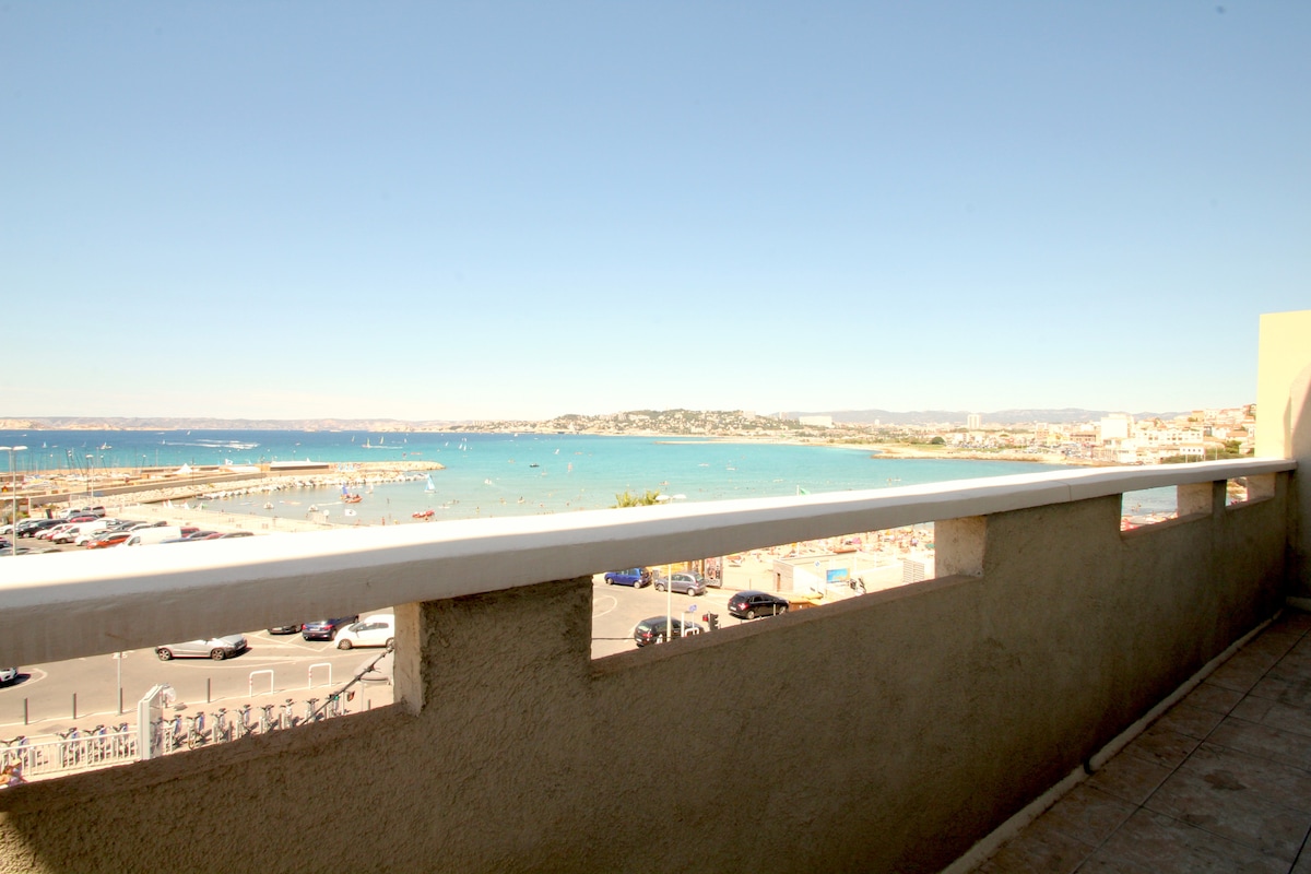Appartement traversant avec balcon et vue sur la mer, les îles et tout Marseille. Bus direct pour le stade Orange Vélodrome pour les matchs de l'OM (18 min) et le centre ville (Castellane), arrêt à 300 mts. Plages à 400 mts. Parc des Calanques à 600 mts. Navettes maritimes en été pour le Vieux Port et Les Goudes. Environnement calme et sûr, rue peu passante. Stationnement gratuit et facile. Wi-Fi (fibre)