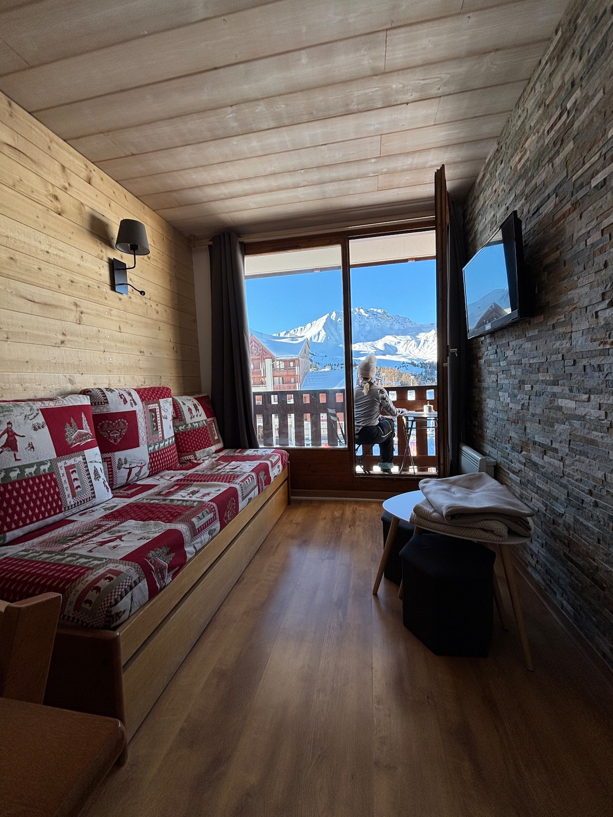 Cet appartement rénové de 35m² au 3ème étage est très lumineux avec un balcon exposé sud et vue sur les pistes à la Plagne Bellecôte 1930m. Avec sa chambre séparée, vous disposez de 2 espaces nuits. Literie de qualité pour 6 personnes.