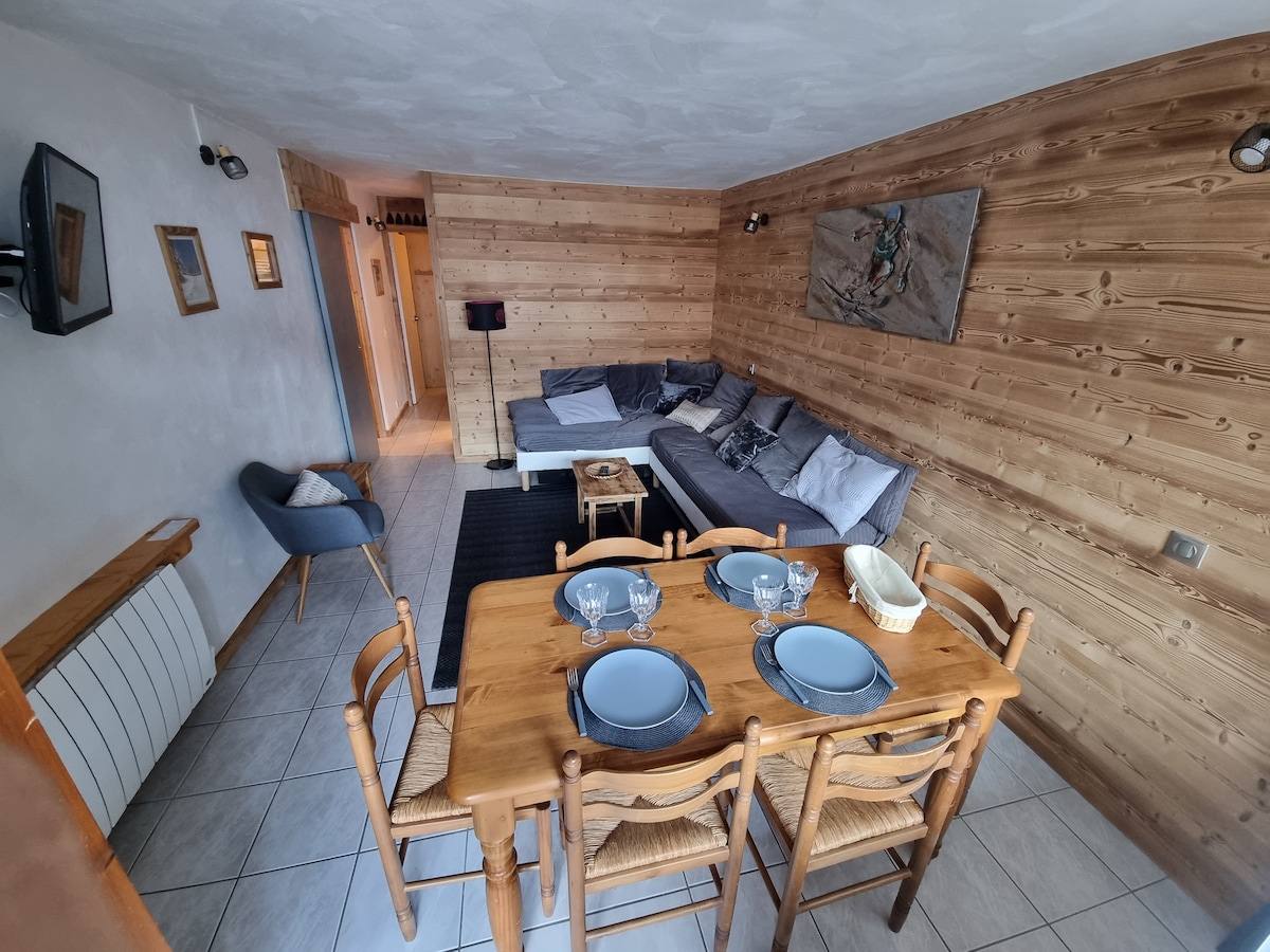 Ce logement paisible offre un séjour détente pour toute la famille. Equipé d'un lit gigogne d'un coté et d'un lit peigne de l'autre, cet appartement séparable par une cloison mobile est idéal pour 2 couples ou 2 parents avec 2 enfants. Une baignoire pour la fin de la journée de ski ou de randonnée. Un réfrigérateur avec congélateur pour pouvoir amener une partie de ses repas. Du confort ski au pieds. Location du Dimanche au dimanche pour la période d'hiver.