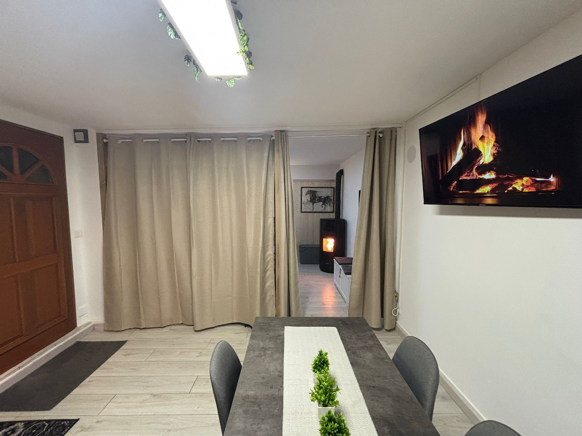 Ce logement est mitoyen du nôtre et situé sur une jolie place arborée.le terrain est clos et permet le parking sécurisé d'une voiture ou une camionnette;il est constitué d'une entrée ,une cuisine équipée d’un frigo,2 plaques induction,un micro onde etc...,une grande pièce à vivre avec un feu de bois au rez-de-chaussée,3 chambres et 1 sdb au 1er étage et possibilité d’une 3ème chambre au 2ème.