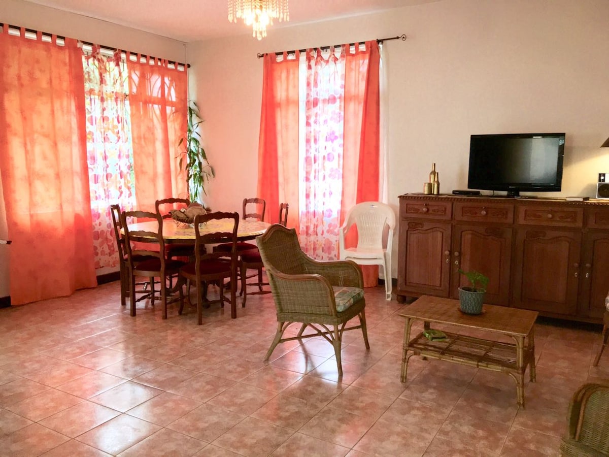 Rez de chaussée entier de 110 m2, à votre disposition. (Hélas, une taxe locale de €3 pour les + 12 ans, par nuit) Idéalement situé entre Rose-Hill et Quatre-Bornes, dont la foire du centre-ville, accessible en 10 minutes grâce au transport en commun. Les plages d'Albion et de Flic en Flac ne sont qu'à 15 minutes en voiture. Il y a un supermarché, une pharmacie et un gym à 10 minutes de marche. Parking pour une petite auto, en toute quiétude. Bienvenue chez l'habitant.