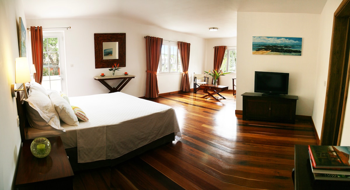 La plus typique de la maison, cette grande chambre propose une décoration mauricienne avec de beaux meubles anciens. Sa salle de bain privative est équipée d’une grande douche et d'une baignoire.