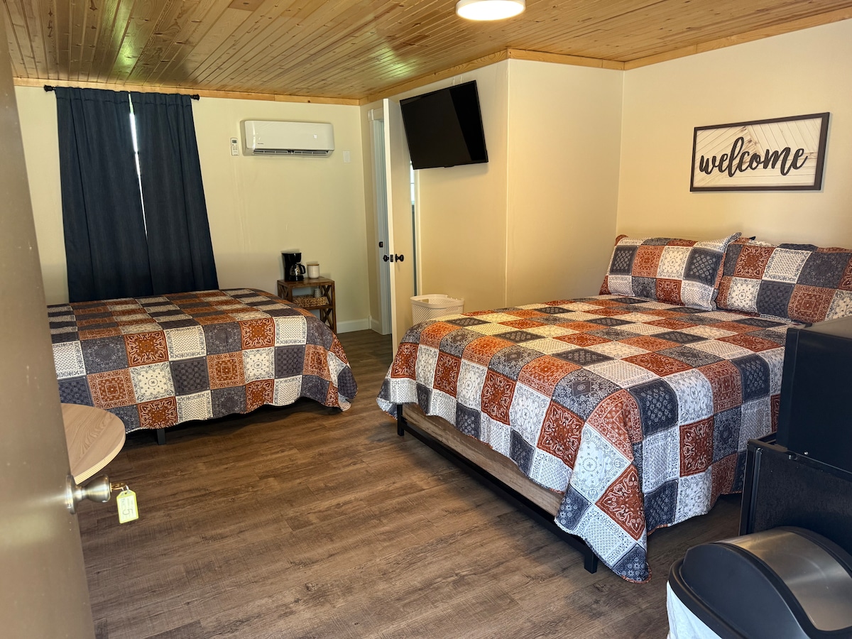 Jacuzzi Suites are the size of a hotel room with the privacy of a woodsy cabin. Our suites the perfect way to spend a romantic getaway. Each suite has a queen pillow-top bed, a sitting area, a Jacuzzi for two and a small deck with a stunning view of Beaver Lake. No kitchens; however, each one has a coffee bar w/ mini fridge, microwave and Keurig. Each suite has its own private boardwalk entrance to ensure privacy. We have 3 suites attached to the office building. No pets allowed in the suites.