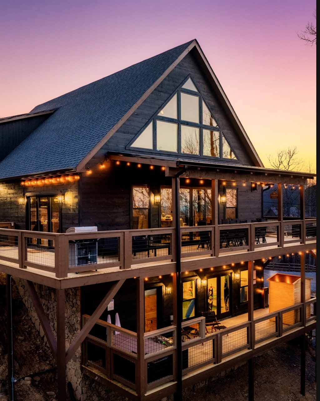 Escape to this stunning Luxe Chalet in Blue Ridge, GA, near the Aska Adventure Area! Just 10 mins from downtown & Lake Blue Ridge, this modern retreat boasts vaulted ceilings, chic décor, & two living areas. Enjoy a gourmet kitchen, spacious decks, an outdoor kitchen with a pizza stone, a sauna, & an 8-person hot tub. Game-filled basement, kid-friendly rooms, & a peaceful creek nestled directly behind the home. Relax in luxury while being surrounded by nature’s beauty!