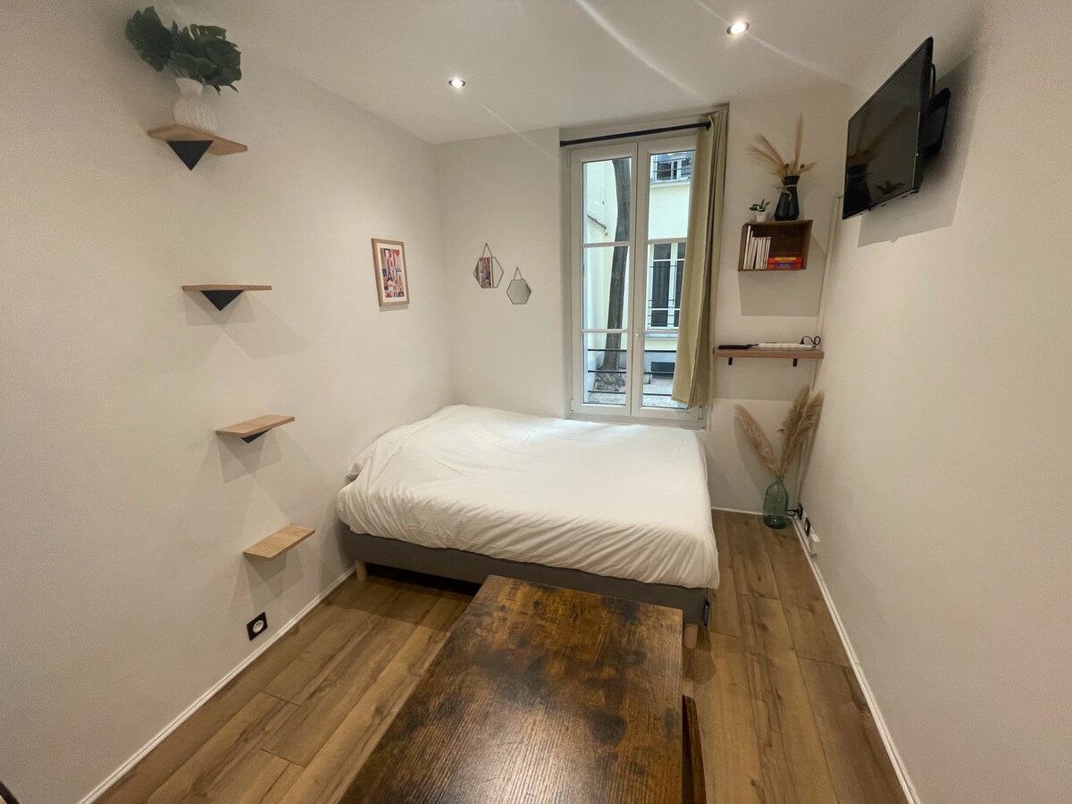Overlooking our stunning inner courtyard and the charming neighboring church, your pied-à-terre offers open views, incredible natural light, and absolute tranquility—right in the heart of Paris. Each apartment includes a living room with a sofa bed, a dining area with a round table, a beautiful bedroom featuring a luxury hotel–quality bed, a fully equipped open kitchen with a dishwasher and washer-dryer, a shower room, and a separate toilet.
