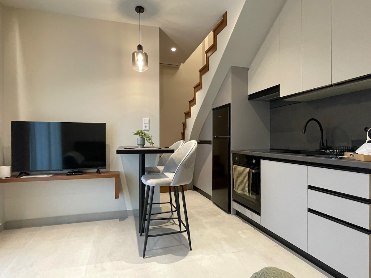 Ένας σύγχρονος και καλαίσθητος χώρος σας υποδέχεται φιλόξενα καλύπτοντας κάθε ανάγκη σας. Διαθέτει άνετο υπνοδωμάτιο με ευρύχωρη ντουλάπα και έξυπνη τηλεόραση, πλήρως εξοπλισμένη κουζίνα, ιδιωτικό μπάνιο, κλιματισμό, δωρεάν wifi. Βρίσκεται σε απόσταση μόλις 5 λεπτά με τα ποδιά από την κεντρική πλατεία της πόλης. Απέναντι υπάρχει σούπερ μάκρετ, φαρμακείο, φούρνος και άλλα καταστήματα. Είμαστε στη διάθεσή σας για όποια πληροφορία χρειαστείτε σχετικά με την περιοχή.