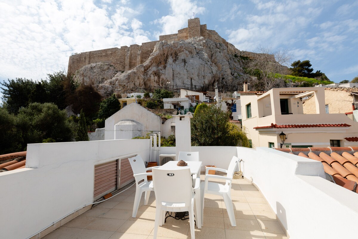 Το σπίτι βρίσκεται κυριολεκτικά στη σκιά της Ακρόπολης και ακριβώς κάτω από τον Ιερό βράχο. Τα Αναφιώτικα είναι μια από τις παλιότερες γειτονιές της Αθήνας και κρατά ακόμα το χρώμα και τον χαρακτήρα που είχε από παλιά. Είναι περιοχή αμιγούς κατοικίας. Στην ταράτσα του όποιος καθίσει έχει την ευκαιρία να δει την Αθήνα από το ψηλότερο δυνατό σημείο και να αισθανθεί την θετική ενέργεια του μέρους το οποίο όχι τυχαία επέλεξαν οι αρχαίοι Έλληνες για να φτιάξουν ένα από τα επτά θαύματα του κόσμου!