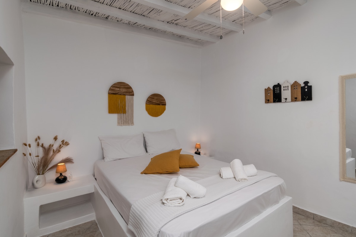 This is a very cosy place with direct view towards the famous sunset of Milos from the capital of Plaka. It is a two minutes walk from the center, still in a very quite location offering privacy. Right in the traditional village of Plaka!