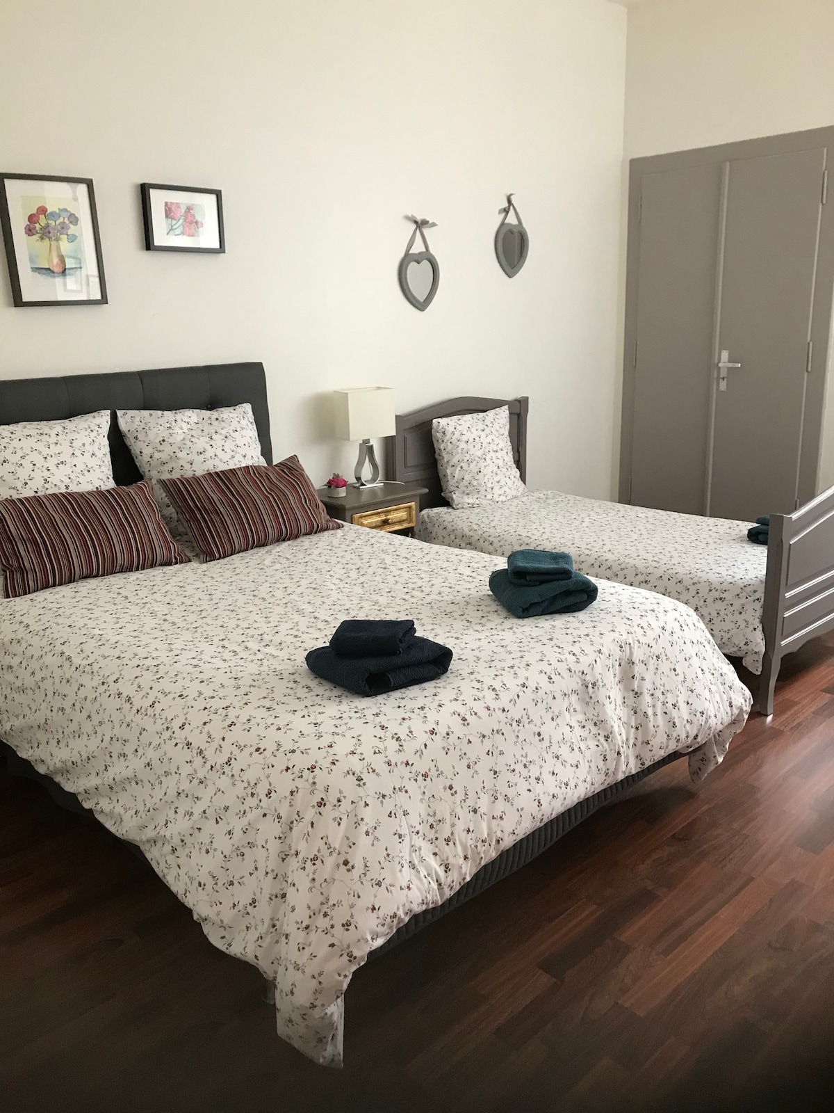 L ‘appartement se situe au RDC dans un ancien hôtel particulier, au calme, côté jardin.Nous proposons une chambre+SDB privée + un salon (grandeTV Netflix) avec un accès direct au jardin.Notre famille vit juste au dessus.Vous pourrez prendre le petit déj avec confitures maison sur la terrasse ou dans le salon attenant à la chambre. Nous sommes proche de la faculté,du plan d'eau,de l'Opéra,du centre piétonnier et de la cathédrale. Nombreux commerces, restaurants à 2 pas.