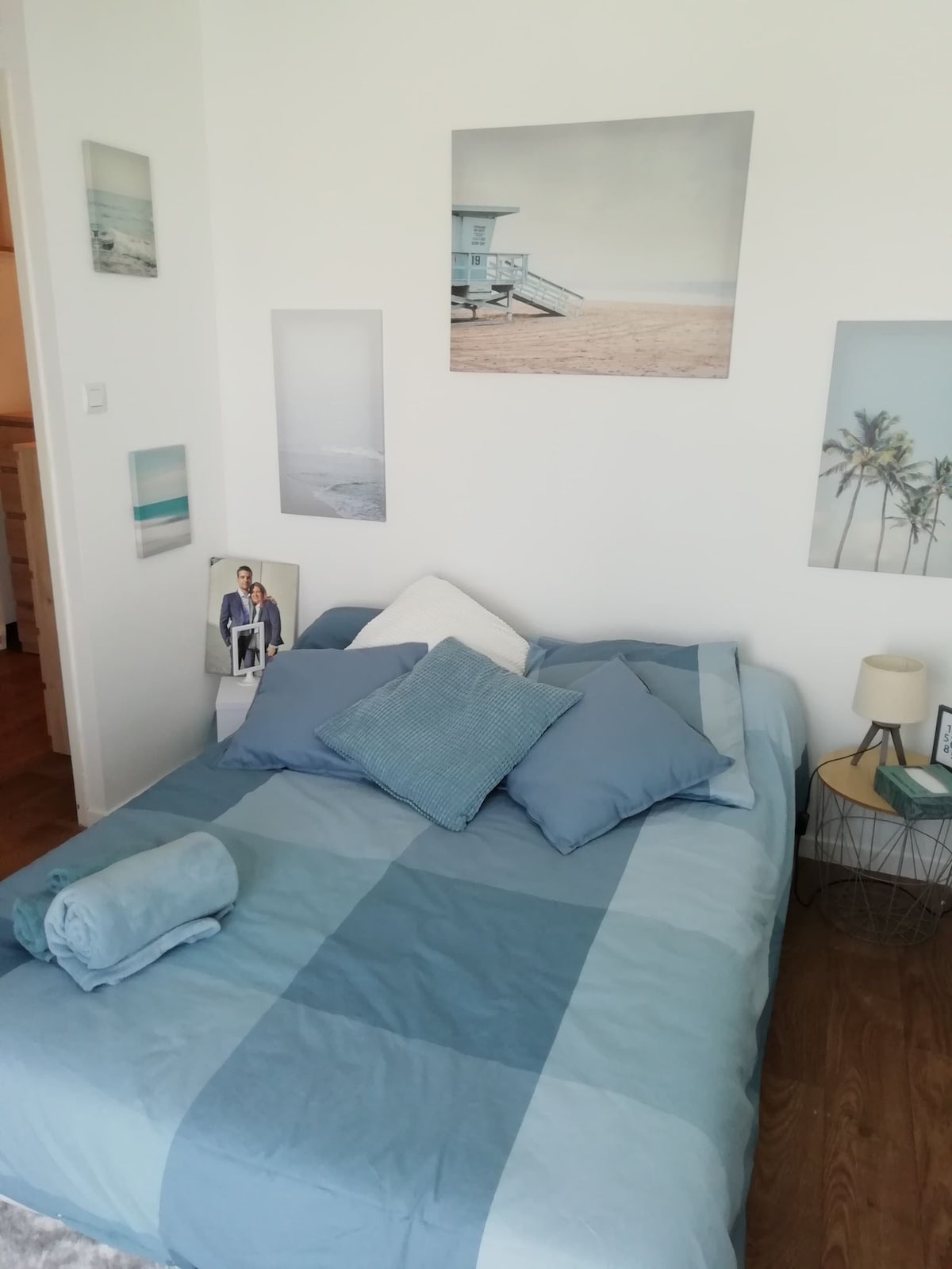LauRina: Grande chambre accès de plain-pied et privatif dans quartier calme et résidentiel, proche commerces et 10 minutes des plages. Salle d’eau privée avec WC, petit-déjeuner express inclus (thé et café à volonté, 1 jus d'orange et 2 madeleines), WIFI et équipement électroménager (micro-onde, machine à café, mini frigo, télévision avec accès gratuit Netflix).
