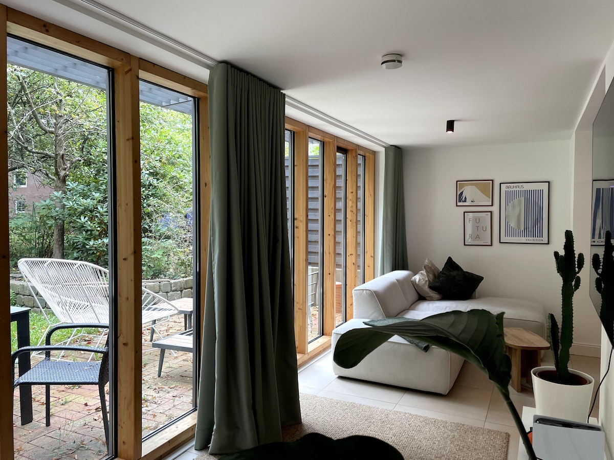 Am Cityrand gelegenes Souterrainappartement zum Wohlfühlen mit 21qm, wo 200m weiter alle paar Minuten die M5-Buslinie fährt, eine Fahrradstation ist, Eppendorf mit Läden, Restaurants, Wasser und Parks. Das UKE, Airportbus und der NDR sind nah. Allergiegeeignet Alles desinfiziert, in den 5 Schritten der erweiterten Reinigung von Airbnb gereinigt.
