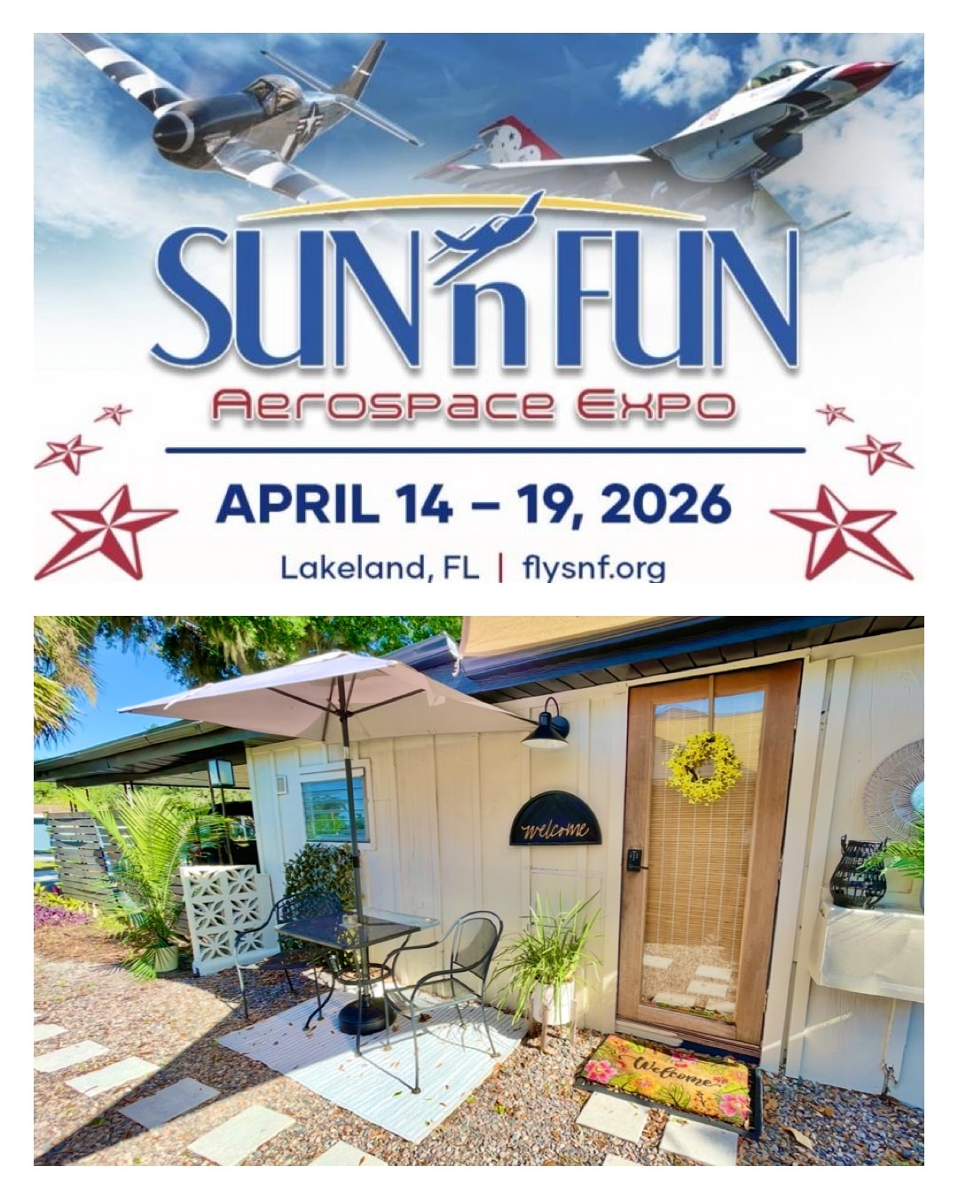 阳光明媚的单间公寓 + 庭院,距离 SUN N FUN 仅几分钟路程!