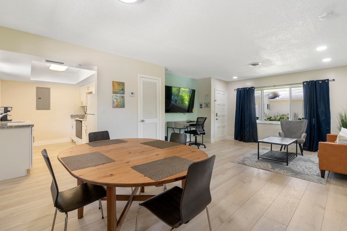 We are 15 minute drive to/from FLL Airport. This newly remodeled apartment is ideal for a couple (2 people max). You have access to one designated parking spot on site (ONE CAR MAX). The LED lights in the room can be changed to suit your mood. A 20 minute drive to the iconic Wave Wall Beach at Las Olas. This apartment, while adjoined to another structure, offers complete privacy with exclusive access via keypad for you and your travel companions only. Check-in: 3 PM Check-out: 10 AM