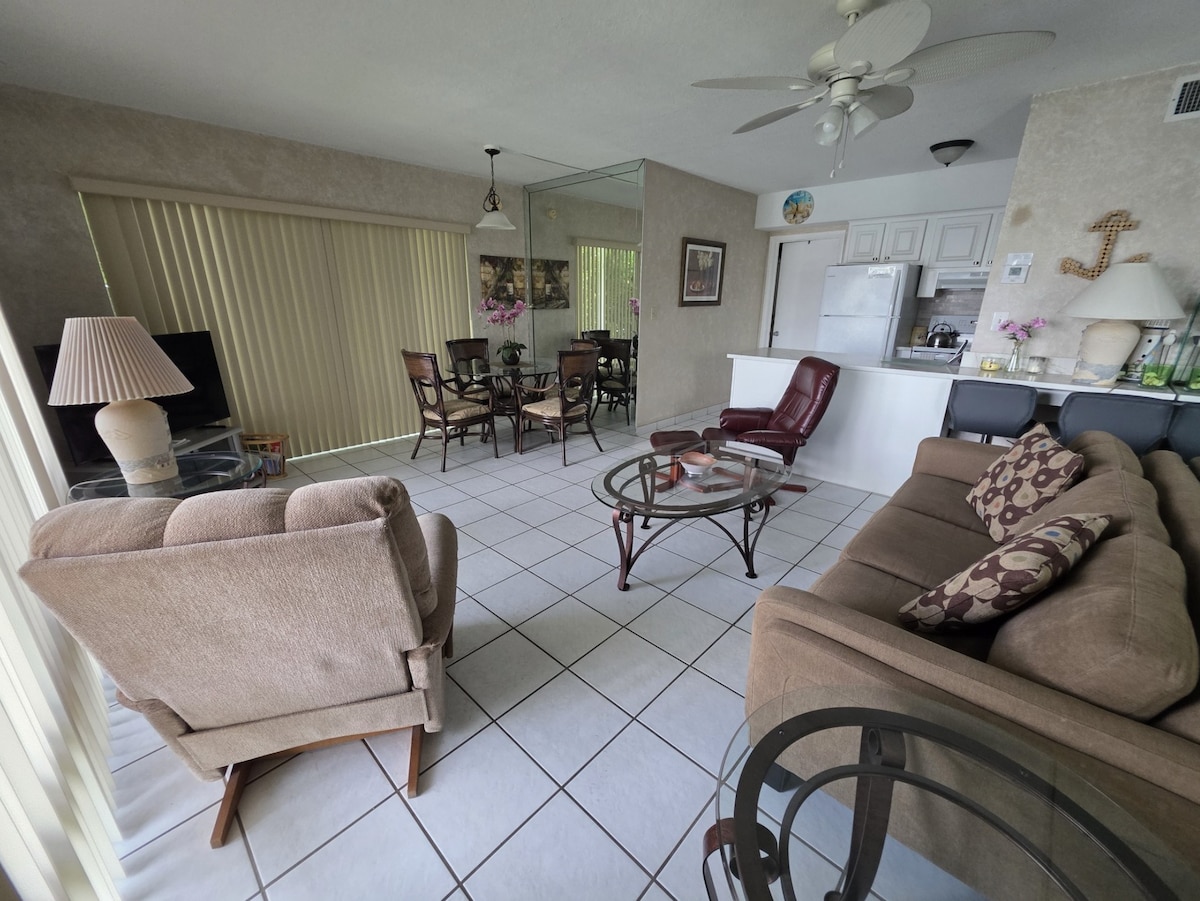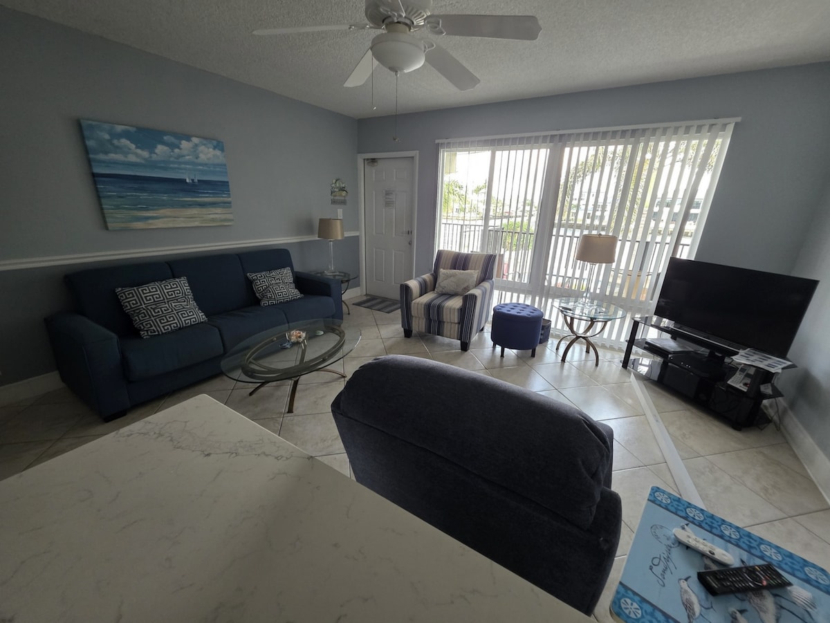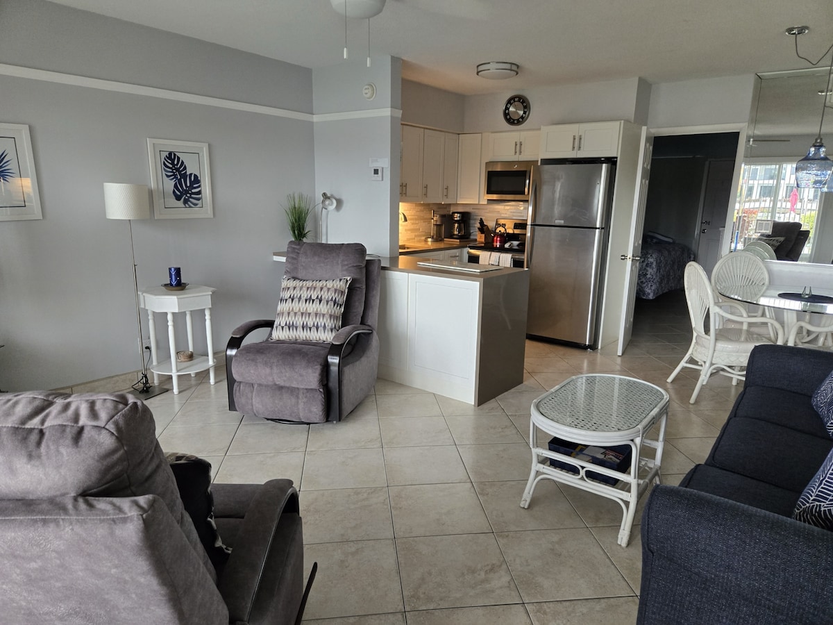 Our 2-bedroom, 1-bathroom condo offers seaside charm and modern amenities. Just 10 minutes walking from the beach, enjoy provided beach towels, chairs and umbrella. Stay productive with fast internet, and unwind with a smart TV. We have tailored the place to be peaceful and homey for long stays. The kitchen is fully equipped, and the living space invites comfort. Explore nearby shops, restaurants, and attractions. Book now and experience coastal living at its finest!