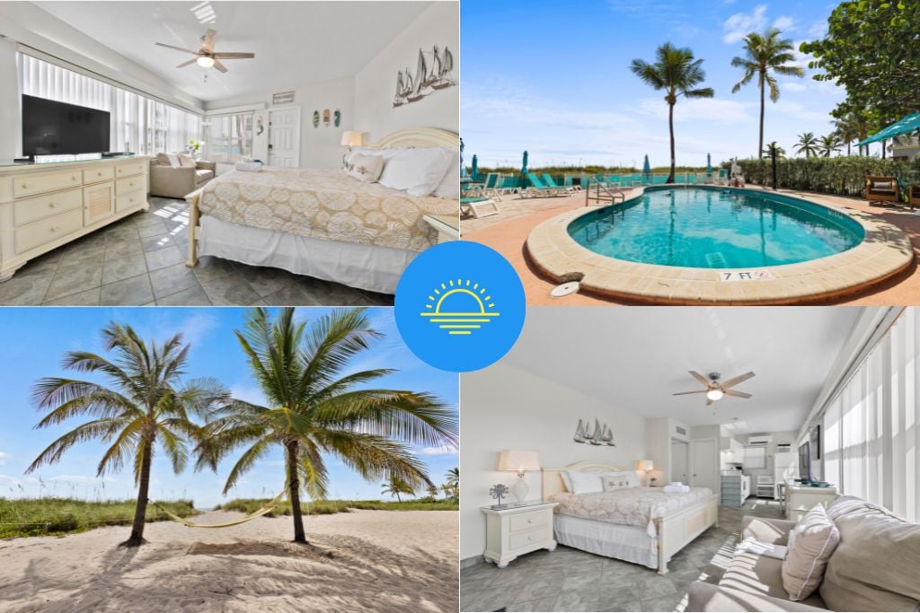 Our unit is in a classic 60's vintage Florida low-rise restored condo/hotel with direct beach and ocean views. A truly hidden gem off the beaten path that evokes an earlier era! -Coastal urban styled 1 b/1 b on 2nd floor -Full kitchen w/ all amenities. -King size bed. -Free Wi-Fi/Cable. -Complimentary parking space. -W/D on premise. If your business needs take you to The Diplomat Beach Resort Hollywood, this is a great alternative as we're only a five minute drive or a short walk away.