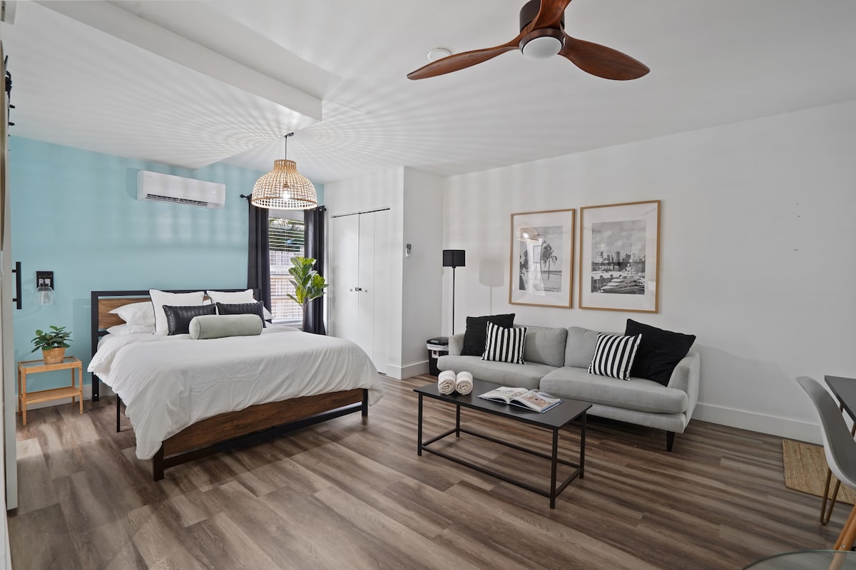 Beautiful 1-bedroom apartment with true king-size bed. It's right off US-1, the main north-south thoroughfare. You'll be just far enough away that you won't hear any traffic noise, but you'll have fast access to everywhere in Fort Lauderdale -- the beach, Las Olas Blvd, Wilton Manors, and the airport. Whole Foods and Trader Joe's and many restaurants are all close.