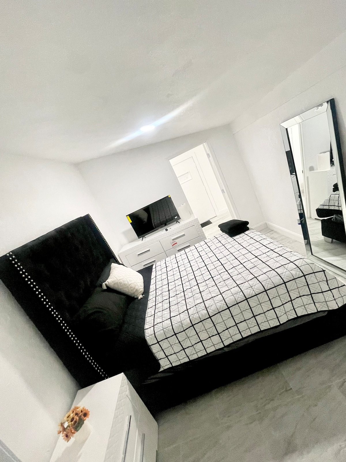 宽敞的单间公寓,配备加大双人床和独立入口