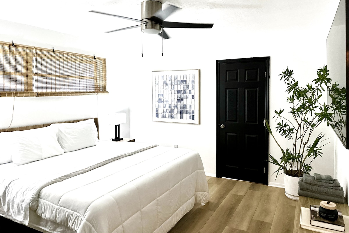This is a newly renovated mid-century modern retreat in the heart of Pembroke Pines. This comfortable studio is ideal for short term stays, featuring a full kitchen, a beautifully updated bathroom, and a spacious living area. Unwind in a comfortable queen-sized bed and a futon that opens up to a double bed. Includes complimentary coffee, toiletries, fast WiFi, and a smart TV with streaming apps. Immerse yourself in comfort and style in this inviting space in vibrant Pembroke Pines.