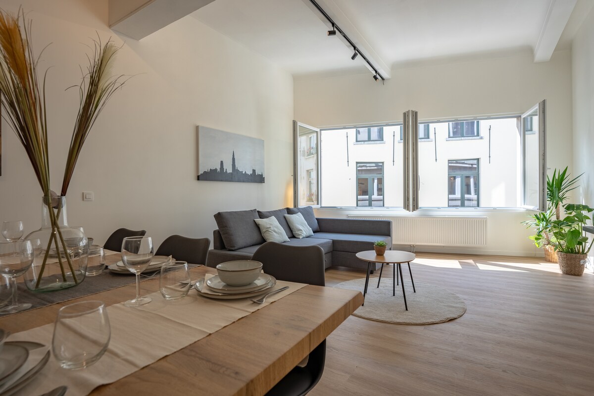 Het appartement bevindt zich in een meer dan 450 jaar oud historisch gebouw, midden in het hart van Antwerpen, vlak bij de iconische Grote Markt. Vanuit de woonkamer geniet je van een prachtig uitzicht op de Onze-Lieve-Vrouwekathedraal. Zodra je de ramen opent, bevind je je letterlijk in het levendige en bruisende centrum van de stad. Alle bezienswaardigheden, winkels en musea zijn eenvoudig te voet bereikbaar.