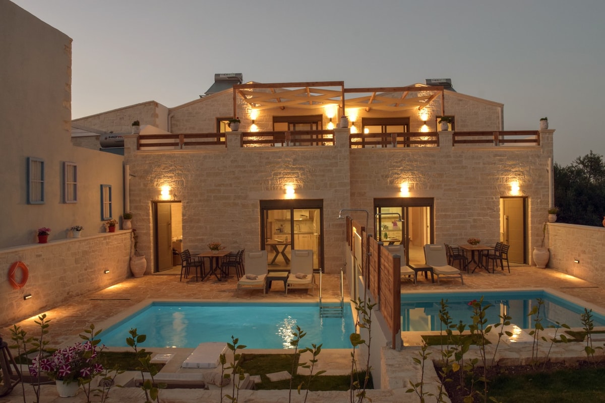 Agave house is new luxury residence with infinity pool(be ready in April 2023).Located in Stalos area in Chania at the foot of a rocky hill surrounded by private land of olive trees. The house is designed in minimal style for tose seeking comfort and pleasure with breathtaking view of the Cretan sea .Τhodorou island ,Chania city and the White mountains . All equipment of the house is charecterized by high quality design.
