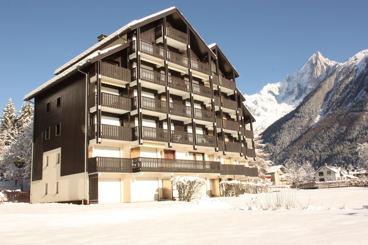 Profitez de ce havre de paix avec vue panoramique sur l’Aiguille du Midi et le Mont Blanc. Vous aurez la sensation d’être en pleine nature grâce au parc arboré et à la rivière situés au pied du studio. A seulement 6mn à pied de la rue piétonne, de la gare routière et de l’arrêt de train, à 10 mn du départ du téléphérique de l’Aiguille du Midi. vous pourrez laisser votre véhicule dans le parking privé et profiter des navettes gratuites desservant la vallée.