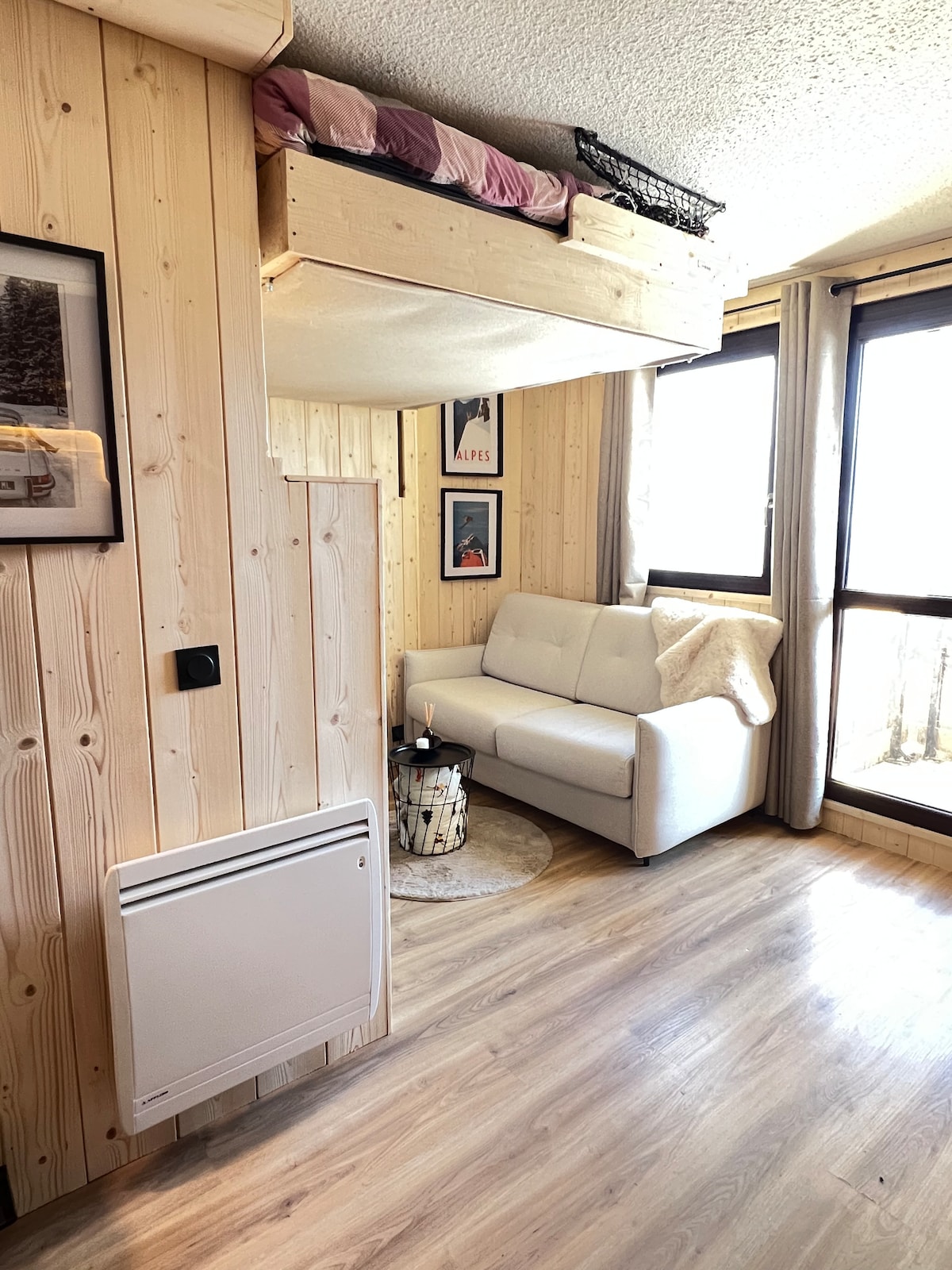 Appartement 32 m2, rénové style montagne, au calme au 1er étage avec ascenseur situé dans une résidence avec une vue imprenable sur le domaine skiable du Grand Massif (Flaine, Les Carroz, Morillon, Samoëns, Sixt), vous aurez accès aux pistes depuis les casiers à skis. Parking privé couvert, casier à ski, linge de lit (sauf lit parapluie), linge de toilette et forfait ménage inclus.