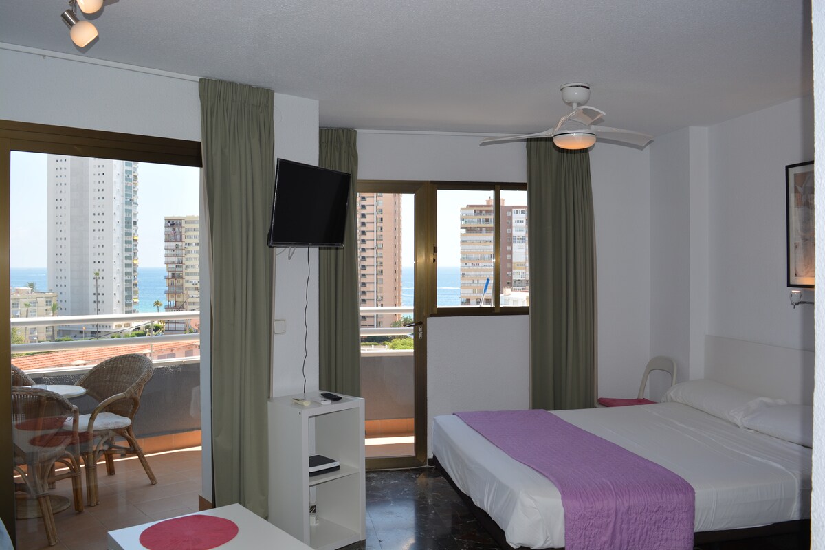 Apartamento estudio con vistas al mar en la zona llana del rincon de loix , proximo a zona comercial y de ocio. Dispone de capacida para dos personas personas y dos mas en sofa-cama , consta de lavadora, cocina equipada con microondas, calentador de agua, tostadora. Las toallas y la ropa de cama estan incluidas en el alojamiento.piscina al aire libre.Dispone de aparcamiento .