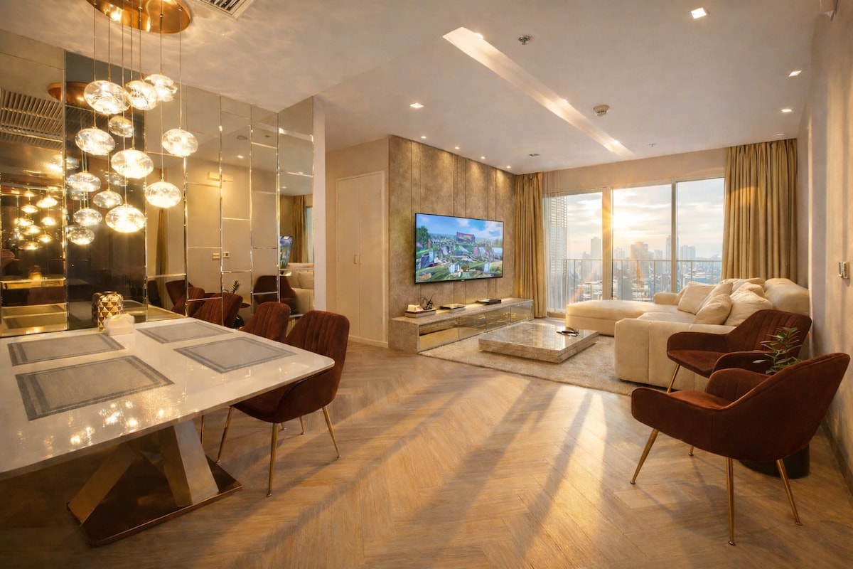 Welcome to your luxurious urban oasis in the heart of vibrant Bangkok! Perched high atop a modern high-rise condominium, this stunning retreat offers unparalleled views of the bustling city skyline and lush green parks. Whether you're visiting Bangkok for business or leisure, this modern condominium offers the perfect blend of luxury, convenience, and breathtaking views. Book your stay today and experience the best that this dynamic city has to offer!