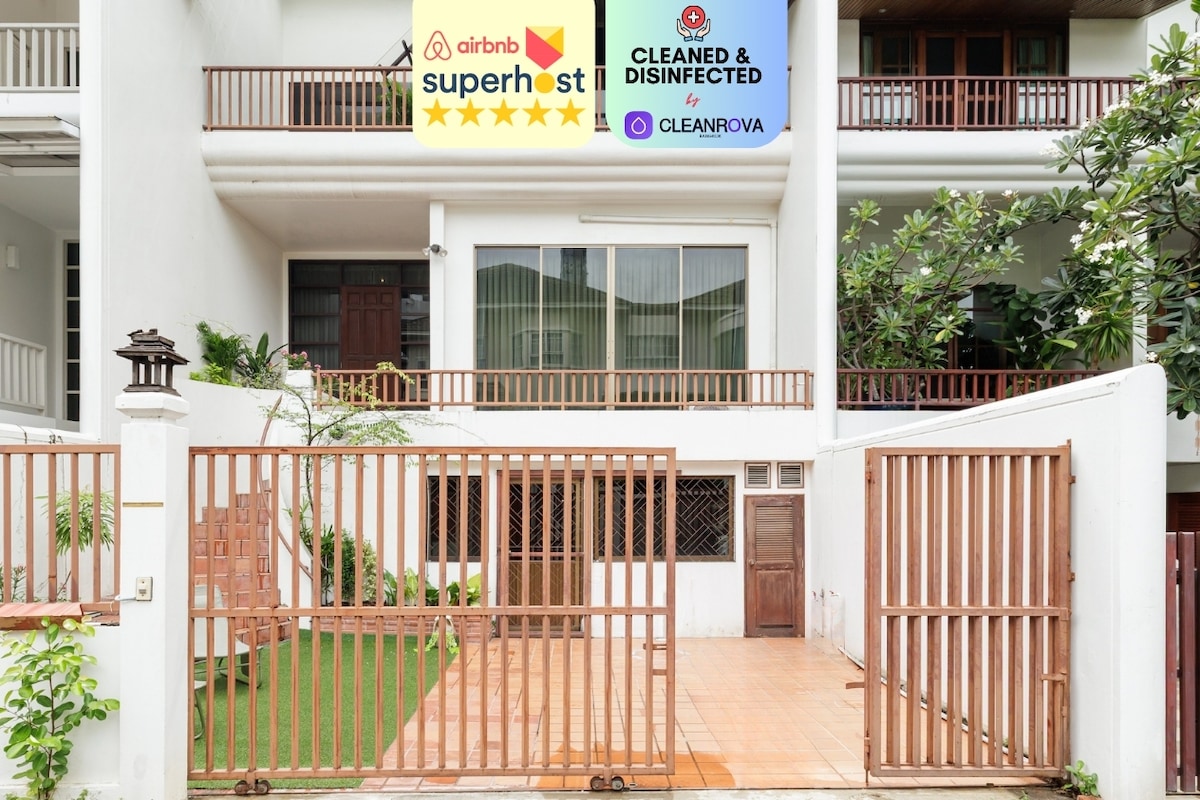 Home Sweet Home :) welcome all of guests. We are located on Sukhumvit 2 Alley and only 600 meters from BTS Ploen Chit. This area is in City center of Bangkok. Lots of shopping mall and restaurant such as, - Central Embassy 900 m - Bumrungrad International Hospital 1 km - Terminal 21 1.5 km - Siam Paragon 2 km We provide good free service during a stay. - Daily breakfast - Daily Cleaning - Access to Netflix - Charcoal for BBQ Enjoy the stay! Thanks Pim(host) and Poom(co host)