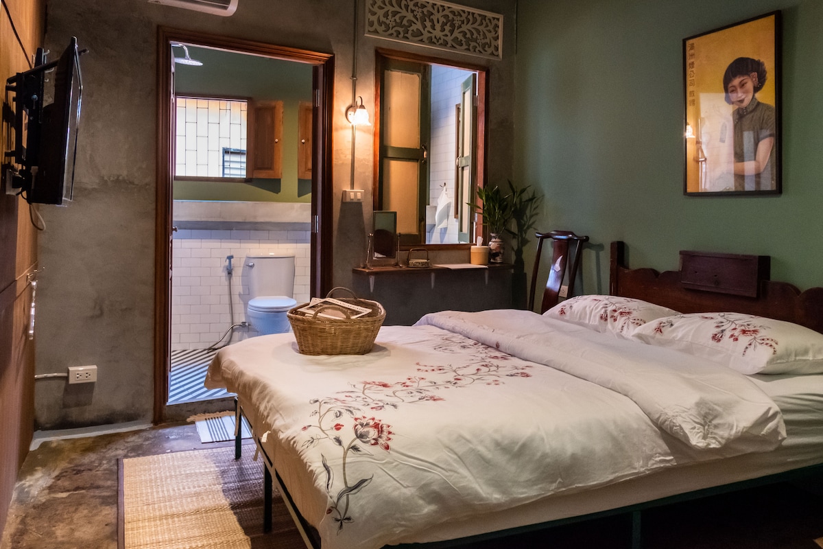 This is 13.5 sq.m private room , has 1 queen size bed and private bathroom (built-in). Flat screen and air conditioner. We renovated our place from old Chinese shop house. The interior decoration is inspired by local Thai- Chinese living style. The building has 2 story with additional rooftop balcony. Our location is in Chinatown area( around 100 meter to Wat Mongkhon station (MRT). The name of the building is Live Local Yaowarat Cafe & Hotel.