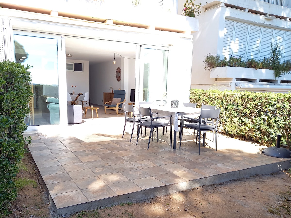 Nice ground floor apartment for 5 persons, located in the residential area of Politur in Platja d'Aro, 5 mn walking from the shared pool, and 15 mn walking from the beach and the main street. Park very close with playground. You can park for free on the street close to the apartment. The pool opens from half-June to half-September.