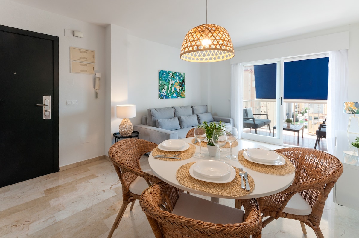 A beautifully refurbished in March 2022 and fully redecorated in November 2024. Equipped to a high standard with all modern appliances for your most comfortable stay. It is located in a unique and not widely known Spanish holiday destination. A hidden gem. Sweeping mountains and magnificent sandy beaches surround the bright apartment. The apartment is designed to offer both outdoor and indoor living; In summer, the living room and terrace follow an open view to the beach and mountains.