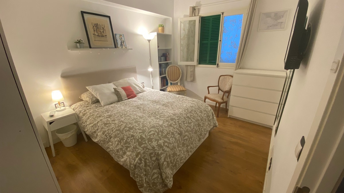 Third floor (no lift), air-conditioned 2 bdr apartment in 19th century building. Capacity for 4 but we recommend a maximum of 2 in the double & 1 adult (or 2 children) in the single bedroom. Totally refurbished in 2015. Located in a quiet side street (vehicle access for permit-holding residents only), just a minute from restaurants, shops, bars, banks. Minimum official booking must be for 1 month. Electricity, water and wifi included in price.