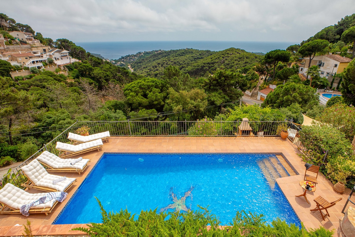 Total relaxation in a private and guarded environment Luxury villa in Tossa de Mar near the beach with jacuzzi and pool. Located in a private urbanization with a large private beach with restaurant and cafe. The best views of the sea near the small town of Tossa de Mar, the house offers great tranquility in the middle of nature. The house has 4 double rooms with bathroom. Luxury villa in Tossa de Mar near the beach with jacuzzi and pool. Located in a private urbanization with a large priv...