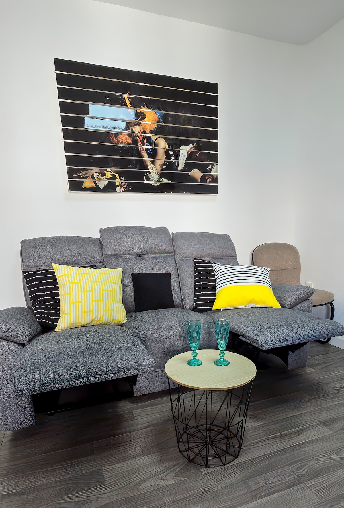 Apartamento a estrenar, totalmente reformado. Decoración con estilo, paredes de hormigón y pintura blanca lisa, armarios de hierro con cristales antiguos, mesas de maderas antiguas recicladas, sofas de lino, cocina de microcemento, con lavavajillas, horno, microondas, lavadora, secadora... Luz ambiente y cálida