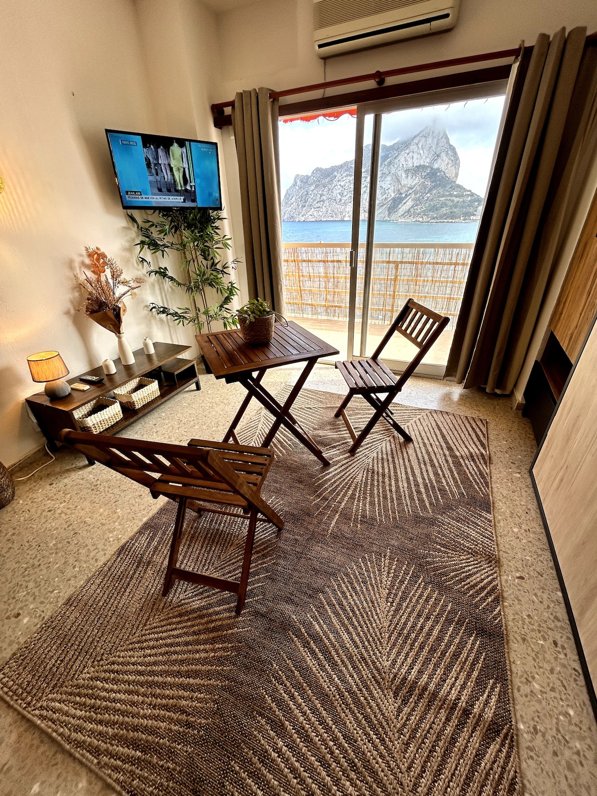 ¡Vacaciones junto al mar en Calpe! Apartamento de una habitación recién reformado con impresionantes vistas al Mediterráneo ubicado en las inmediaciones del Parque Natural del Peñón de Ifach. Disfruta de amaneceres increíbles desde su amplia terraza acristalada. El apartamento cuenta con un dormitorio, una sala de estar luminosa con sofá-cama, cocina equipada, conexión a internet y acceso a todas las comodidades del edificio, incluyendo piscina y garaje.