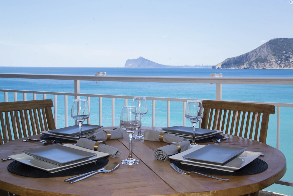 Yes, not kidding, you're gonna rent the SEA. And you'll find the PEACE. I PROMISE. And you will also enjoy a majestic Cliff. Where the waves crash. And sometimes very strong. And they sound a lot. And you'll hear them all the time. Full Relaxation. 12 min. walk from the Campomanes Marina. And since I know you won't want to leave the Terrace. I'm giving you FREE. My parking spot. In the center of Altea. So you can go whenever you want. You won't want to leave. See you soon