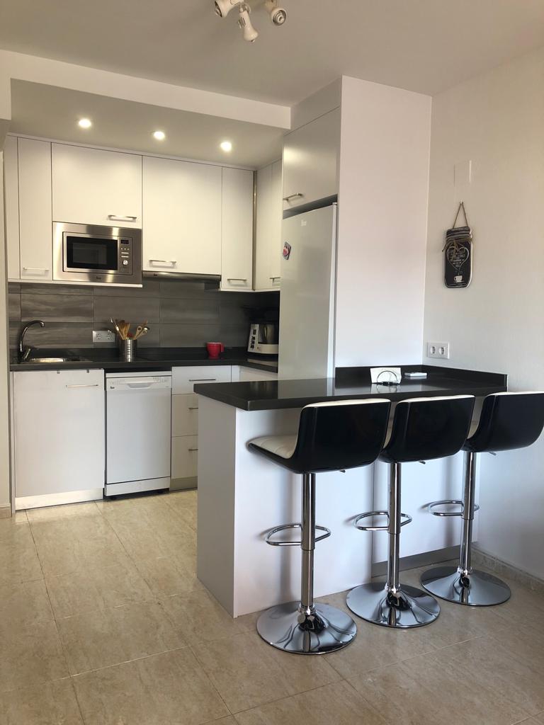 Este alojamiento tiene una ubicación excelente. Situado en primera línea de la playa con acceso directo desde el edificio. Además cuenta con 3 piscinas comunitarias de diferentes tamaños. El apartamento se distribuye en 1 dormitorio con cama de matrimonio y armario empotrado, 1 cuarto de baño completo, salón con sofá cama, wifi, cocina totalmente equipada y una amplia terraza con vistas al mar y mobiliario exterior. El apartamento cuenta con aire acondicionado y calefacción.