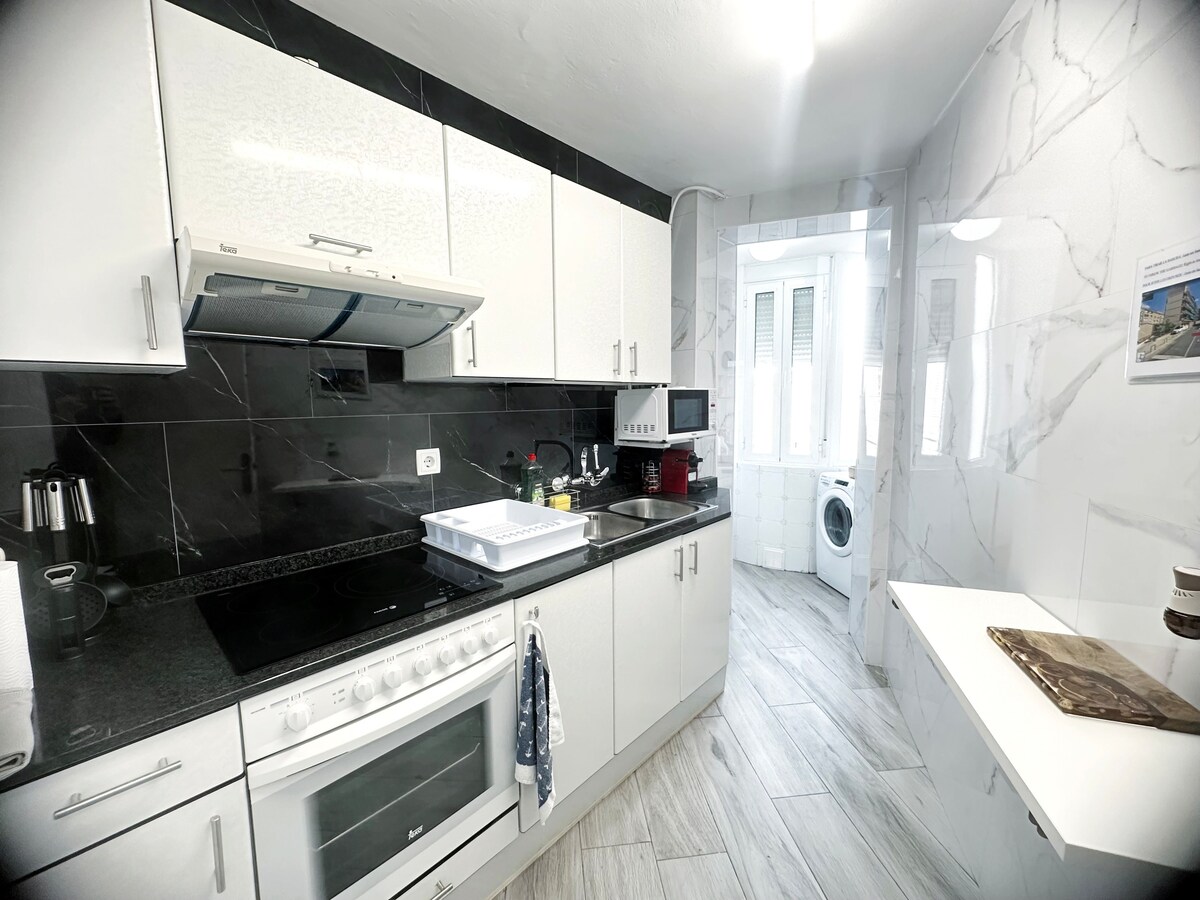 Casa reformada en 2021. Ubicación excelente en el centro del CASCO ANTIGUO (a 2’ de la Catedral, y a 15’ a pie de la playa). Apartamento en segundo piso con acceso por ESCALERAS. Gran sala de estar (smart TV 50" y AACC), cocina y comedor abiertos completamente equipados (lavavajillas, cafetera Nespresso, micro, hervidor de agua, tostadora y “ecofiltro” para el agua filtrada). Wifi gratuita de alta velocidad. 1 Dormitorios King size. 1 Baños completos con ducha efecto lluvia.