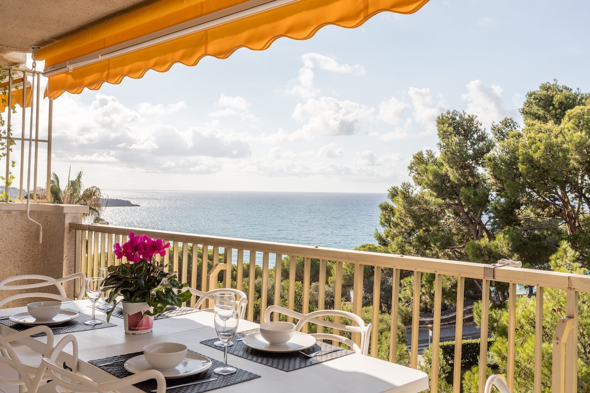 Beautiful apartment with spectacular sea views five minutes from one of the most beautiful beaches in Salou, Cala Crancs, with capacity for 4 people, it consists of a large double bed, a sofa bed and an independent cabin consisting of one bed. Kitchen and bathroom were renovated in 2022 and 2018 respectively. It has a large 14 m2 terrace with unique views of the Mediterranean Sea and the Salou lighthouse. If you want to enjoy the combination of a natural environment, landscape and the beach...