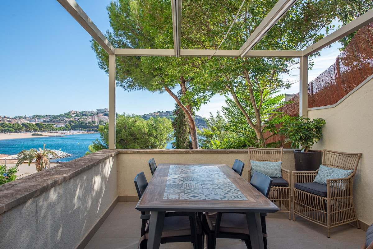 An exclusive waterfront experience with an exceptional view in a charming flat freshly renovated in 2023 with all modern comforts (fully equipped kitchen, air conditioning, wifi, Netflix, quality bedding, etc.). Its unique view and large balcony perched above the sea will give you unforgettable memories of the sound of the waves. On site: large swimming pool, private garage. Within walking distance: supermarket, beach bar-restaurant, hiking trails.