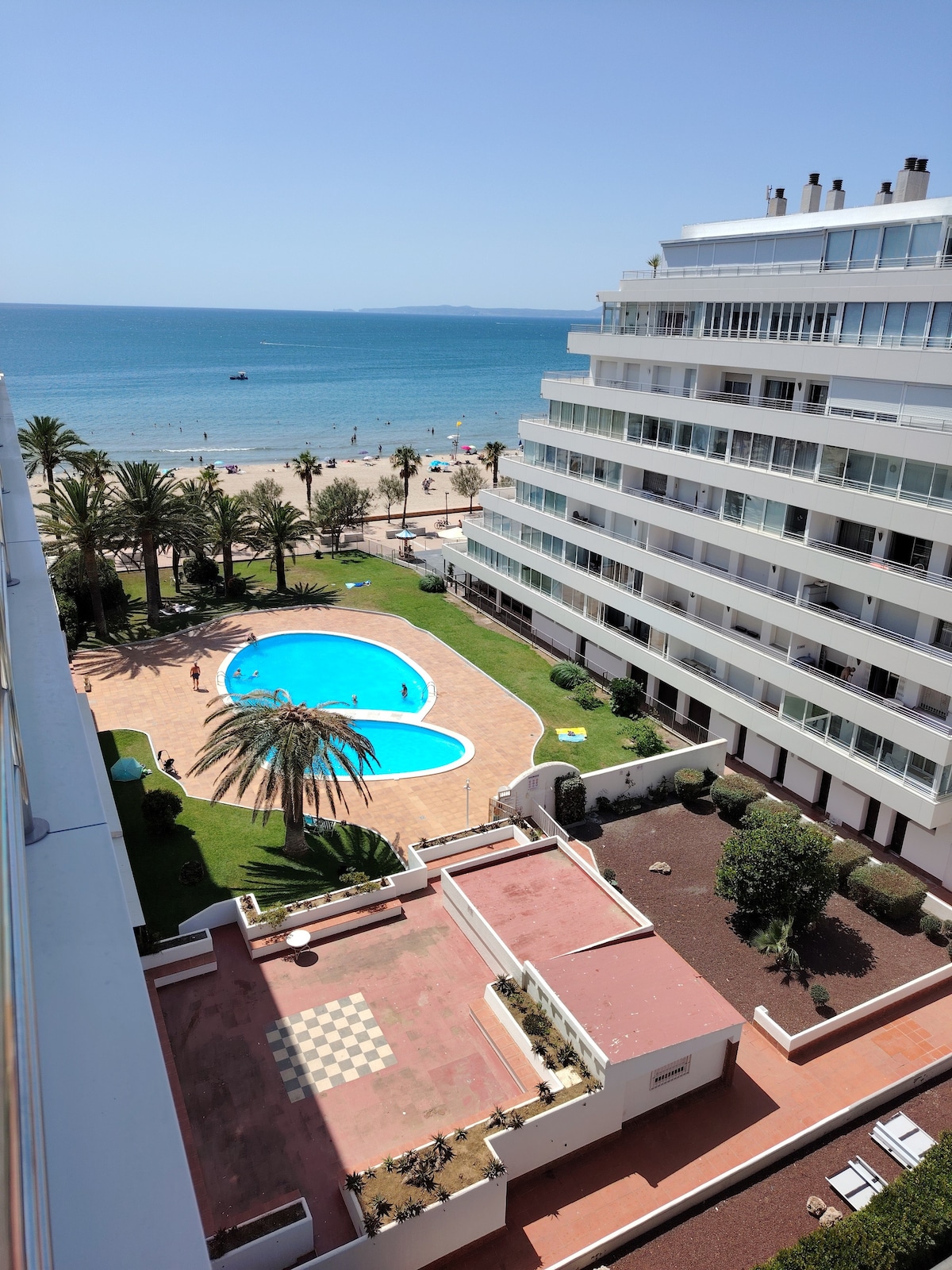 Piso de 2 habitaciones, 3 piscinas comunitarias y parking incluido. Habitación principal con cama doble y salida a terraza. La otra habitación tiene 1 litera y cama individual. Terraza con mesa, sillas reclinables y vistas al jardín y las piscinas ( solo en temporada de verano, de final de Junio a final de setiembre) . Con la cocina nueva y equipada. Televisión 65” Phillips Ambilight en sala de estar. Dispone de ropa de cama y toallas. Cafè dolce gusto gratuito!