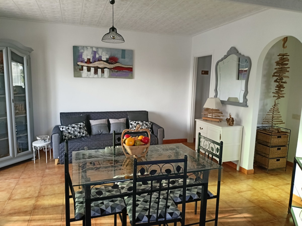 Located in a small family residence, with only a small sent between the residence and the sea, the apartment with 2 bedrooms can pleasantly host a family of 4. View from terrace is spectacular, since there is no obstacle between the apartment and sea. From the terrace , Medes Islands, across the bay, as well as all of the Roses bay are visible. To go and swim, one only needs to get down into the small cove in front of the apartment. 10' away walking, there is a supermarket and a restaurant.