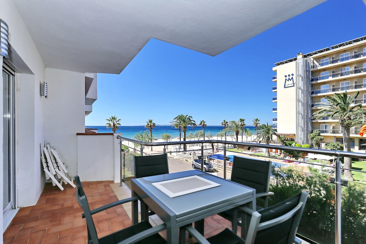 Apartamento muy soleado con terraza de 25m2 y vistas sin obstáculos a la playa. Por la noche se oye el romper de las olas. Tiene ascensor. Ideal para familias, la playa está a unos metros del apartamento. Una habitación doble con lavabo completo, tipo suite. Una habitación con litera y cama individual. Un segundo baño amplio. Cocina y comedor en un único ambiente. Espacioso y práctico.