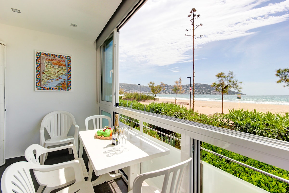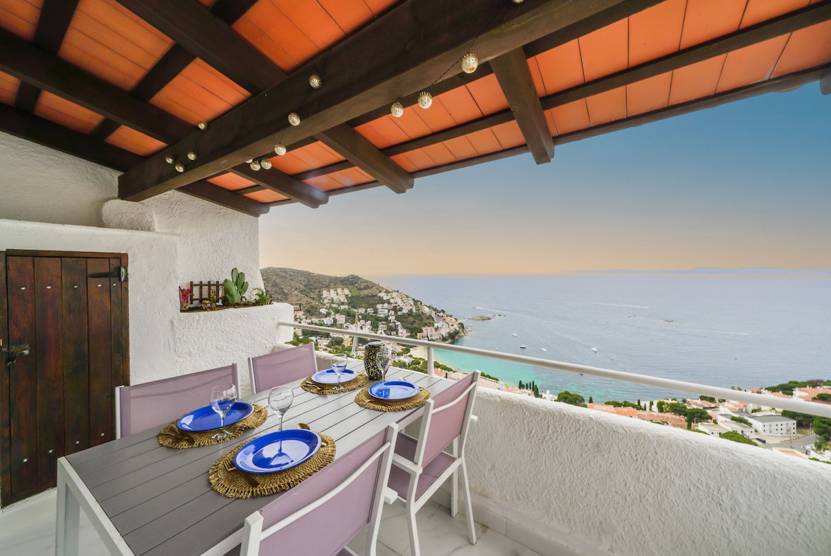 Relax and disconnect in this renovated, quiet and elegant apartment, in front of the sea and with spectacular views of the Bay of Roses and private access to the bathing area. Located between the beaches of La Almadraba and Canyelles Petites, next to the Natural Park of Cap de Creus. With all the comforts, tv, wifi internet, dishwasher, washer, dryer, air conditioning, super-equipped luxury kitchen. Barbecue on the terrace and large community garden. Capacity for 4-6 people.