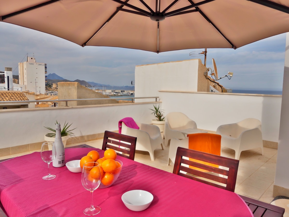 Two floors penthouse by the beach, with impressive seaside views. 4 wonderful outdoor terraces, 2 of them overlooking the sea. Huge and stylish living room (AC unit), large and modern kitchen (fully equipped), 3 bedrooms (all with AC unit). Main one includes private terrace with seaside views, and an en-suite bathroom), and 3 bathrooms. Located on the seafront, with access to many restaurants, ice cream shops, pubs, as well as the beautiful beach of the fishing village of El Campello.
