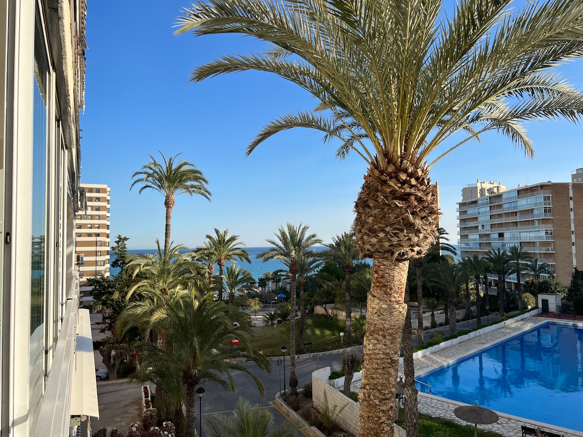 Precioso apartamento en primera línea de playa (salida directa al mar) con inmejorables vistas al mediterráneo. Ideal para parejas y familias con hijos. Prohibido fiestas y ruidos.Disponible para Largas Estancias. Consúltenos. Zona conectada con transporte público: TRAM y Autobuses con el centro ciudad. Todos los servicios: Restaurantes, Supermercados, Farmacia. Cuenta con una terraza frontal e impresionantes vistas al Castillo de Santa Bárbara; donde podrá relajarse observando las olas del Mar